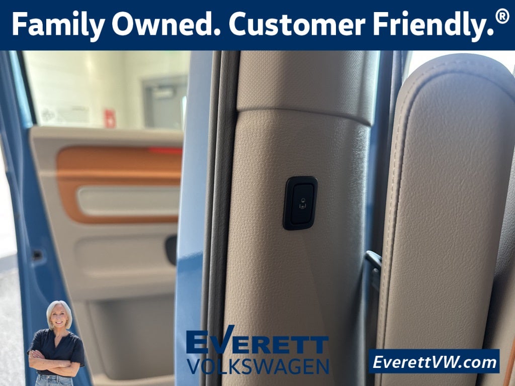 HOMELINK CONNECT, 2-IN-1 MOBILE EV CHARGING CABLE, VW PREPAID SCHEDULED MAINTENANCE, AUTO LED HEADLAMPS, 20 1ST EDITION ALLOW WHEELS, TWO-TONE PAINT SCHEME, CLIMATIC 3 ZONE CLIMATE CONTROL, 2ND ROW DUAL CAPTAIN CHAIRS, REMOVABLE 3RD ROW, IQ.DRIVE W/ADAPTIVE CRUISE, POWER SLIDING 2ND ROW DOORS, HARMA KARDON PREMIUM AUDIO, APP-CONNECT SMARTPHONE INTEGRATION, WIRELESS CHARGING., 14 Speakers, 3rd row seats: split-bench, ABS brakes, Air Conditioning, Alloy wheels, Auto High-beam Headlights, Auto-dimming Rear-View mirror, Automatic temperature control, Brake assist, Bumpers: body-color, Delay-off headlights, Driver door bin, Driver vanity mirror, Driver's Seat Mounted Armrest, Dual front impact airbags, Dual front side impact airbags, Electronic Stability Control, Emergency communication system: VW Car-Net Safe & Secure 5-year, Exterior Parking Camera Rear, Four wheel independent suspension, Front anti-roll bar, Front Bucket Seats, Front dual zone A/C, Front fog lights, Front reading lights, Fully automatic headlights, harman/kardon® Speakers, Heated & Actively Ventilated Front Seats, Heated door mirrors, Heated front seats, Heated rear seats, Heated steering wheel, Illuminated entry, Leather steering wheel, Low tire pressure warning, Memory seat, Navigation System, Occupant sensing airbag, Outside temperature display, Overhead airbag, Panic alarm, Passenger door bin, Passenger seat mounted armrest, Passenger vanity mirror, Perforated V-Tex Leatherette Seating Surfaces, Power door mirrors, Power driver seat, Power Liftgate, Power passenger seat, Power steering, Power windows, Radio data system, Radio: Discover Pro Max w/Touchscreen Navigation, Rain sensing wipers, Rear air conditioning, Rear anti-roll bar, Rear reading lights, Rear window defroster, Rear window wiper, Rearview Mirror w/HomeLink Connect, Remote keyless entry, Roof rack, Speed control, Speed-sensing steering, Split folding rear seat, Spoiler, Steering wheel mounted audio controls, TBD Axle Ratio, Telescoping steering wheel, Tilt steering wheel, Traction control, Trip computer, Turn signal indicator mirrors, Variably intermittent wipers, Ventilated front seats, VW Care, Wheels: 20 1st Edition Alloy.