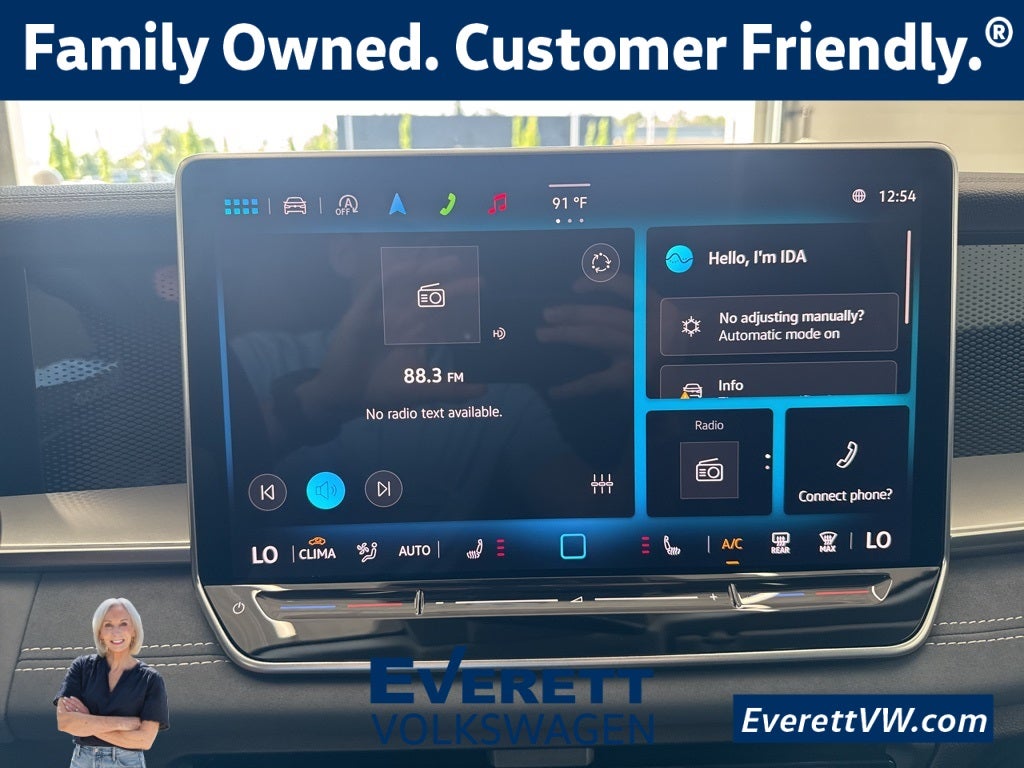 - Radio: MIB4 Composition Media Touchscreen AM/FM -inc: WMA/MP3/FLAC player w/USB, 12.9" touchscreen multi-function center display w/backlit sliders, voice control, 6 speakers + center speaker (7 speakers total) sound system, capability for in-vehicle 4G LTE enabled Wi-Fi (cellular data plan required; includes limited trial), capability for VW Car-Net services (capabilities for services vary; requires enrollment or subscription), Bluetooth® connectivity (for compatible devices), SiriusXM w/360L (w/3-month free trial subscription; 360L services require acceptance of Car-Net terms), App-Connect smartphone integration (w/Apple CarPlay, Android Auto and MirrorLink) via USB, wireless App-Connect smartphone integration (for compatible devices) w/multi-phone pairing capability, 45W fast charging (for compatible mobile phones and accessories) via USB in both rows and Qi wireless inductive charger, cooled, up to 15W (for compatible mobile phones and accessories)