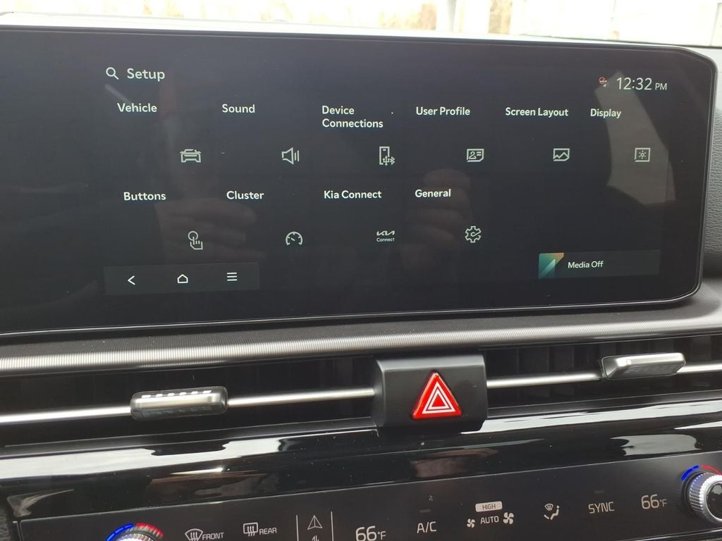 EX Panorama Roof Package (LED Interior Lighting, Panoramic Sunroof, and Roof Rails), All Weather Mats, Alloy wheels, Auto High-beam Headlights, Front dual zone A/C, Heated front seats, Power windows, Syntex Leatherette Seat Trim, 18 x 7.5J Alloy Wheels, 4-Wheel Disc Brakes, 6 Speakers, ABS brakes, Air Conditioning, Automatic temperature control, Brake assist, Bumpers: body-color, Delay-off headlights, Driver door bin, Driver vanity mirror, Dual front impact airbags, Dual front side impact airbags, Electronic Stability Control, Emergency communication system: Kia Connect (includes 1 year free trial), Four wheel independent suspension, Front anti-roll bar, Front Bucket Seats, Front Center Armrest, Fully automatic headlights, Heated door mirrors, Heated Front Bucket Seats, Illuminated entry, Leather Shift Knob, Leather steering wheel, Low tire pressure warning, Occupant sensing airbag, Outside temperature display, Overhead airbag, Overhead console, Panic alarm, Passenger door bin, Passenger vanity mirror, Power door mirrors, Power driver seat, Power Liftgate, Power steering, Radio: AM/FM/HD Audio System, Rain sensing wipers, Rear anti-roll bar, Rear seat center armrest, Rear side impact airbag, Rear window defroster, Rear window wiper, Remote keyless entry, Security system, Speed control, Speed-sensing steering, Split folding rear seat, Spoiler, Steering wheel mounted audio controls, Tachometer, Telescoping steering wheel, Tilt steering wheel, Traction control, Trip computer, Turn signal indicator mirrors, and Variably intermittent wipers.