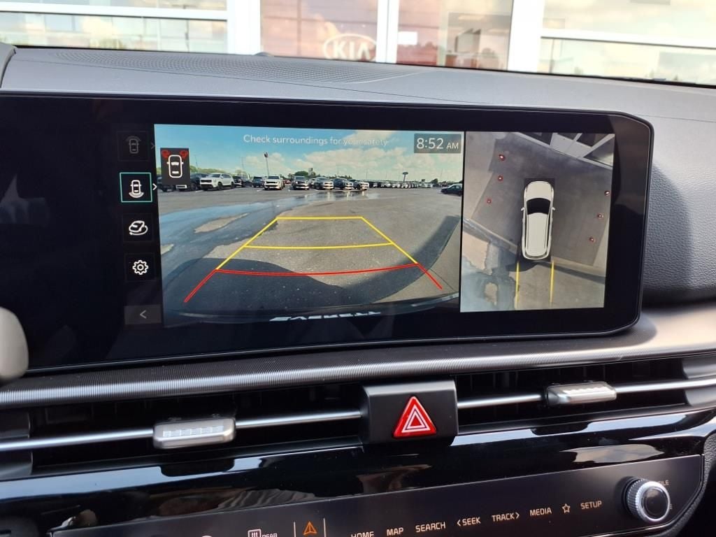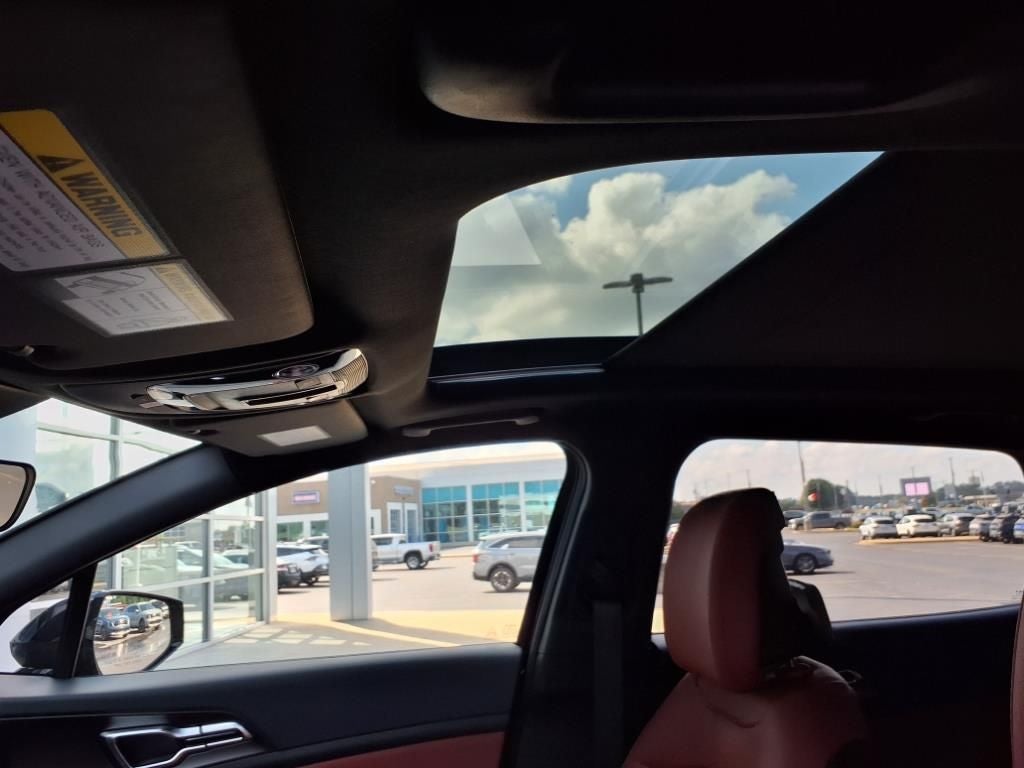 Air Conditioning, Heated steering wheel, Navigation System, Power moonroof, Ventilated front seats, 4-Wheel Disc Brakes, 8 Speakers, ABS brakes, Alloy wheels, AM/FM radio: SiriusXM, Auto High-beam Headlights, Automatic temperature control, Brake assist, Bumpers: body-color, Compass, Delay-off headlights, Driver door bin, Driver vanity mirror, Dual front impact airbags, Dual front side impact airbags, Electronic Stability Control, Emergency communication system: Kia Connect (includes 1 year free trial), Four wheel independent suspension, Front anti-roll bar, Front Center Armrest, Front dual zone A/C, Front fog lights, Front reading lights, Fully automatic headlights, harman/kardon® Speakers, Heated door mirrors, Illuminated entry, Leather Shift Knob, Leather steering wheel, Low tire pressure warning, Memory seat, Occupant sensing airbag, Outside temperature display, Overhead airbag, Overhead console, Panic alarm, Passenger door bin, Passenger vanity mirror, Power door mirrors, Power driver seat, Power Liftgate, Power passenger seat, Power steering, Power windows, Radio: AM/FM/HD Premium Audio System, Rain sensing wipers, Rear anti-roll bar, Rear reading lights, Rear seat center armrest, Rear side impact airbag, Rear window defroster, Rear window wiper, Remote keyless entry, Security system, Speed control, Speed-sensing steering, Split folding rear seat, Spoiler, Steering wheel mounted audio controls, Tachometer, Telescoping steering wheel, Tilt steering wheel, Traction control, Trip computer, Turn signal indicator mirrors, Variably intermittent wipers, and Wheels: 19 x 7.5J Alloy.
