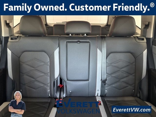 BLACK WHEEL PKG, 3 ZONE CLIMATE CONTROL, HTD/COOLED SEATS, HTD ST. WHEEL, REMOTE POWER LIFTGATE, IQ DRIVE W/ ADAPTIVE CRUISE, WIRELESS CHARGING., 3rd row seats: split-bench, 4-Wheel Disc Brakes, 6 Speakers, ABS brakes, Active Cruise Control, Air Conditioning, Alloy wheels, AM/FM radio: SiriusXM with 360L, Auto High-beam Headlights, Auto-dimming Rear-View mirror, Automatic temperature control, Brake assist, Bumpers: body-color, Compass, Delay-off headlights, Driver door bin, Driver vanity mirror, Dual front impact airbags, Dual front side impact airbags, Electronic Stability Control, Emergency communication system: VW Car-Net Safe & Secure 5-year, Exterior Parking Camera Rear, Four wheel independent suspension, Front anti-roll bar, Front Bucket Seats, Front Center Armrest, Front dual zone A/C, Front fog lights, Front reading lights, Fully automatic headlights, Heated door mirrors, Heated front seats, Heated steering wheel, Illuminated entry, Low tire pressure warning, Occupant sensing airbag, Outside temperature display, Overhead airbag, Overhead console, Panic alarm, Passenger door bin, Passenger vanity mirror, Perforated V-Tex Leatherette Seating Surfaces, Power door mirrors, Power driver seat, Power Liftgate, Power steering, Power windows, Radio data system, Radio: MIB3 Composition Media, Rain sensing wipers, Rear air conditioning, Rear anti-roll bar, Rear reading lights, Rear seat center armrest, Rear window defroster, Rear window wiper, Remote keyless entry, Security system, Speed control, Speed-sensing steering, Split folding rear seat, Spoiler, Steering wheel mounted audio controls, Tachometer, Telescoping steering wheel, Tilt steering wheel, Traction control, Trip computer, Turn signal indicator mirrors, Variably intermittent wipers, Ventilated front seats, Wheels: 18 Black Painted 5-Spoke Alloy. Price includes: $1000 - Customer Bonus. Exp. 04/30/2026