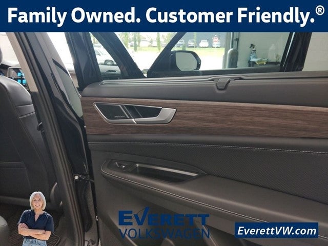 2ND ROW CAPTAIN'S CHAIRS, BLACK WHEEL PKG, REMOTE POWER LIFTGATE, IQ.DRIVE W/ ADAPTIVE CRUISE, APP-CONNECT SMARTPHONE INTEGRATION, WIRELESS CHARGING., 10 Speakers, 3rd row seats: split-bench, 4-Wheel Disc Brakes, ABS brakes, Air Conditioning, AM/FM radio: SiriusXM with 360L, Auto High-beam Headlights, Auto-dimming Rear-View mirror, Automatic temperature control, Brake assist, Bumpers: body-color, Compass, Delay-off headlights, Driver door bin, Driver vanity mirror, Dual front impact airbags, Dual front side impact airbags, Electronic Stability Control, Emergency communication system: VW Car-Net Safe & Secure 5-year, Exterior Parking Camera Rear, Four wheel independent suspension, Front anti-roll bar, Front Bucket Seats, Front Center Armrest, Front dual zone A/C, Front fog lights, Front reading lights, Fully automatic headlights, harman/kardon® Speakers, Heads-Up Display, Heated door mirrors, Heated front seats, Heated rear seats, Heated steering wheel, Illuminated entry, Leather steering wheel, Low tire pressure warning, Memory seat, Navigation System, Occupant sensing airbag, Outside temperature display, Overhead airbag, Overhead console, Panic alarm, Passenger door bin, Passenger vanity mirror, Perforated Vienna Leather Seating Surfaces, Power door mirrors, Power driver seat, Power Liftgate, Power moonroof: Panoramic, Power passenger seat, Power steering, Power windows, Radio data system, Rain sensing wipers, Rear air conditioning, Rear anti-roll bar, Rear audio controls, Rear reading lights, Rear seat center armrest, Rear window defroster, Rear window wiper, Remote keyless entry, Security system, Speed control, Speed-sensing steering, Split folding rear seat, Spoiler, Sport steering wheel, Steering wheel mounted audio controls, Tachometer, Telescoping steering wheel, Tilt steering wheel, Traction control, Trip computer, Turn signal indicator mirrors, Variably intermittent wipers, Ventilated front seats, Wheels: 21 2-Tone Machined Alloy. Price includes: $1000 - Customer Bonus. Exp. 04/30/2026