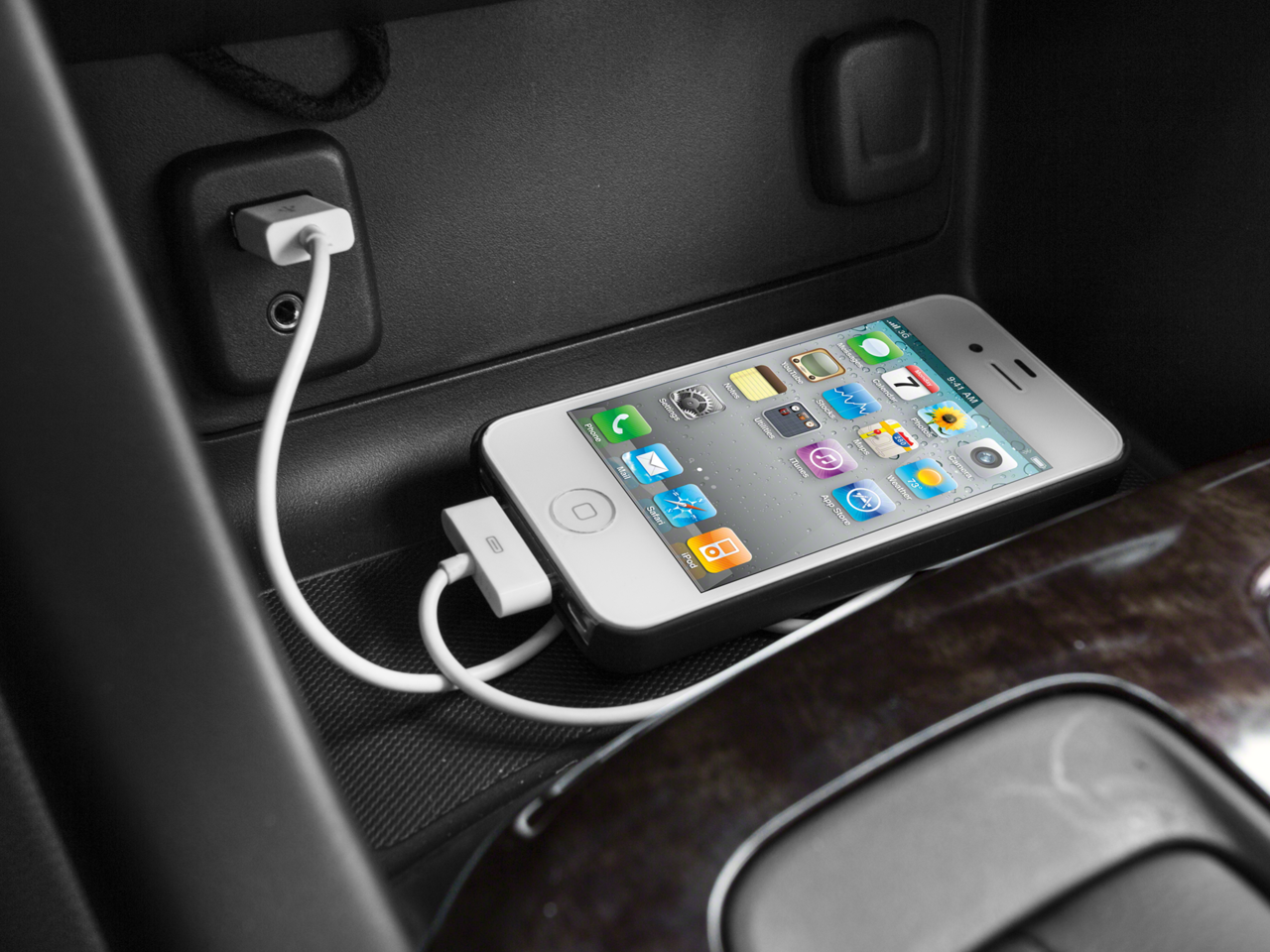 - Audio system feature, USB port, located inside center console