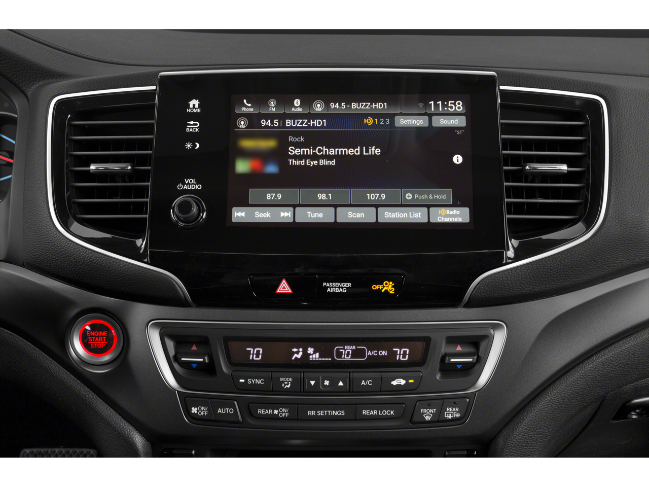 - Radio: 215-Watt Audio System -inc: 7 speakers, subwoofer, Bluetooth HandsFreeLink and streaming audio, MP3/auxiliary input jack, Radio Data System (RDS), Speed-sensitive Volume Compensation (SVC), 2.5-amp USB charging port (1 port in center console/2 ports on 2nd-row), 8" display audio w/high-resolution touch-screen and customizable feature settings, HondaLink, CabinControl remote compatibility, Apple CarPlay integration, Android Auto integration, SMS text message function, SiriusXM (SiriusXM requires a subscription after any trial period, If you decide to continue your SiriusXM service at the end of your trial subscription, the plan you choose will automatically renew and bill at then-current rates until you call SiriusXM at 1-866-635-2349 to cancel, See our customer agreement for complete terms at www.siriusxm.com, Fees and programming subject to change, Available in the 48 contiguous United States and D.C, SiriusXM and all related marks and logos are trademarks of SiriusXM Radio Inc.), HD radio, 2.5-amp USB smartphone/audio interface (1 port in front console) and wireless phone charger