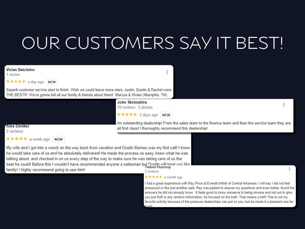 Call 501-320-1400 and discover the Everett Difference at INFINITI OF CENTRAL ARKANSAS!